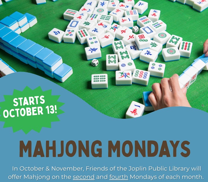 Beginners will receive instruction starting at 1:30 p.m. and experienced players can play from 2 to 4 p.m. in the library’s Community Room. If you have a Mahjong set, bring it along!